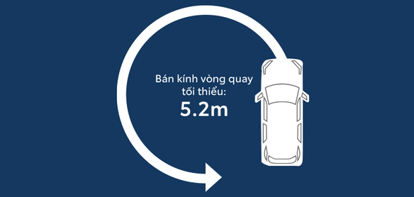 Bán kính vòng quay tối thiểu chỉ 5.2m cho phép di chuyển dễ dàng và linh hoạt trong đô thị, hoặc trong không gian chật hẹp.